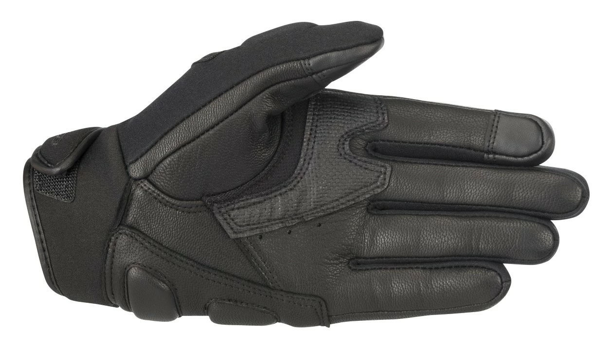 Alpinestars Faster Gloves merge multiple materials into a comfortable glove that provides basic protection. Leather on the palm provides protection and resists general wear and tear. The softshell wind breaker textile on the back of the hand stretches to hug your hand and keeps cold air from cutting through the glove at speed.