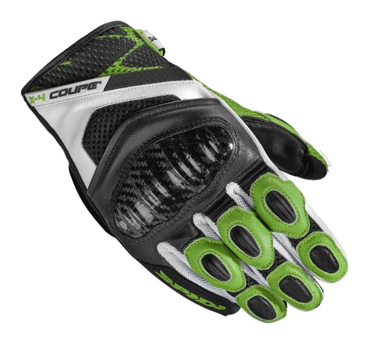 The Spidi X4 Coupe Gloves were developed for sporty riding during the warm season. Made of a mix of leather and three-dimensional perforated fabric, it features a carbon fiber knuckle shield, EN13594:2015 certification and touchscreen capability.