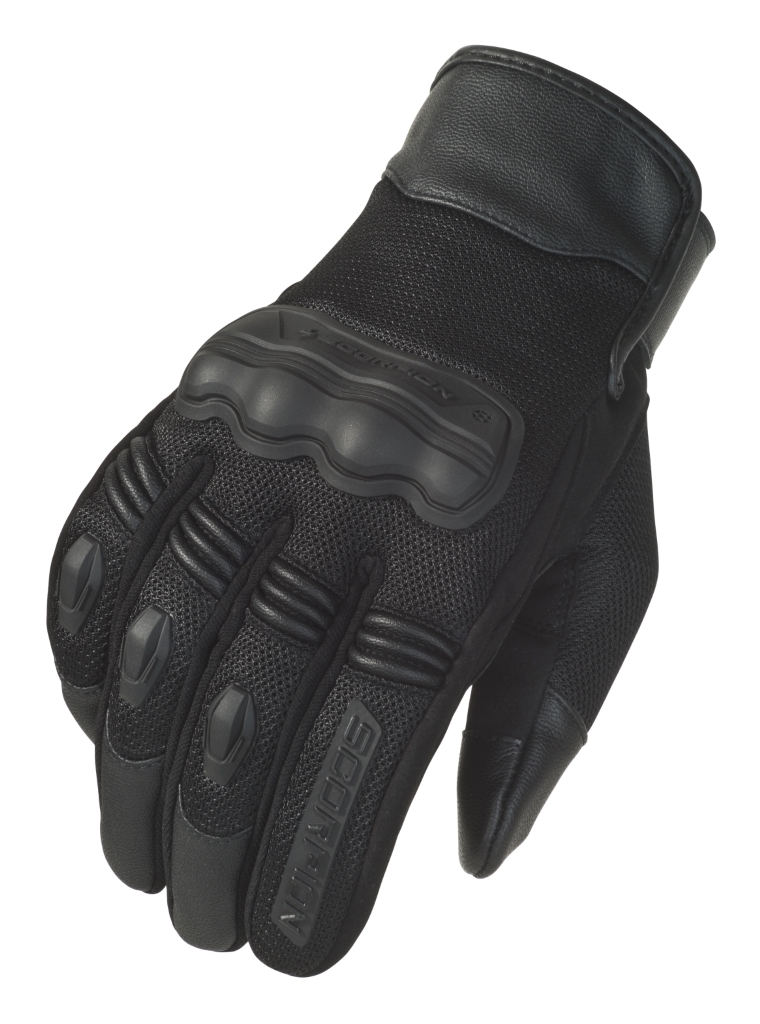 The Divergent Gloves from Scorpion combine a goatskin reinforced, double stitched and padded palm with synthetic leather reinforced finger tips and thumb for abrasion resistance and durability. The knuckles have 3D molded armor while the index finger and thumb are touchscreen ready.