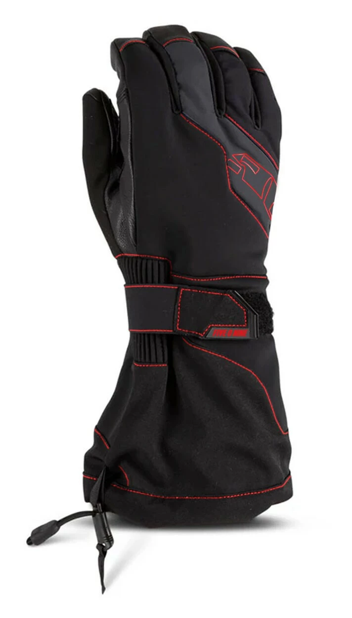 Built for long days and aggressive riding, these gloves combine rugged stretch softshell fabric and a top grain goat leather palm with a waterproof/breathable membrane and strategically placed 3M Thinsulate insulation. The extra-long gauntlet cuff and speed cinch creates a snow-proof seal around your wrists.