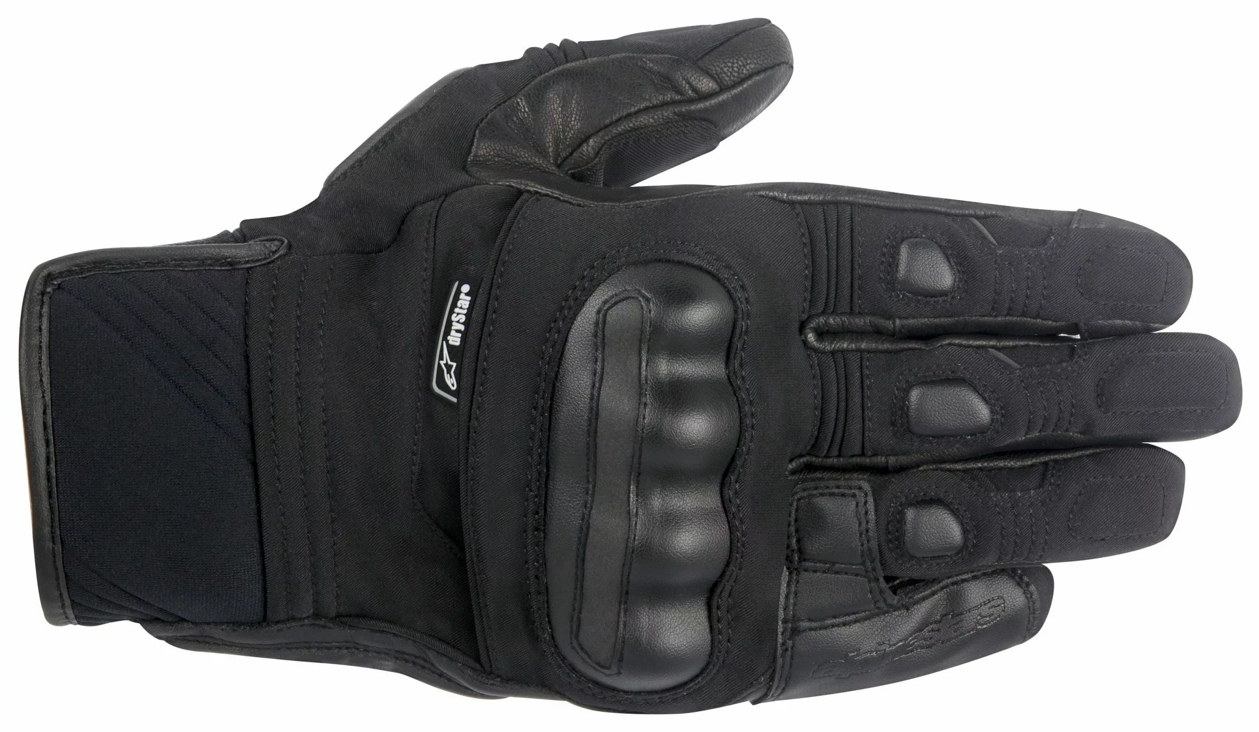 Perfect for cool weather ADV or enduro riding, the Alpinestars Corozal Drystar Gloves short cuff design allows excellent range of motion and, combined with a stretch polyamide upper and goatskin leather palm, provides superb comfort and protection. The Corozal gloves also include heavy hitting protection in the form of hard knuckle protection, 3rd and 4th finger bridge and reinforcements with foam padding in the palm and outer hand impact zones.Â