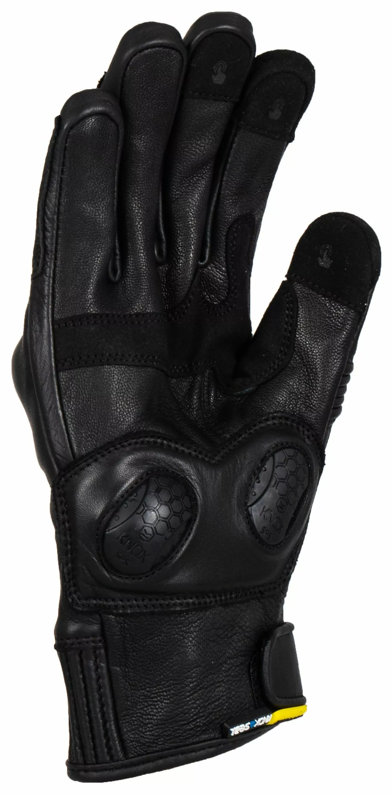 Knox Hadleigh is a stylish short cuff glove with a stretch leather cuff strap and laminated membrane which prevents water from penetrating past the leather exterior. The patented low profile Knox Scaphoid Protection System (SPS) on the palm helps eliminate the grab effect that occurs when a leather palm makes contact with the road, reducing the risk of hyper extension which can be the cause of a broken scaphoid.