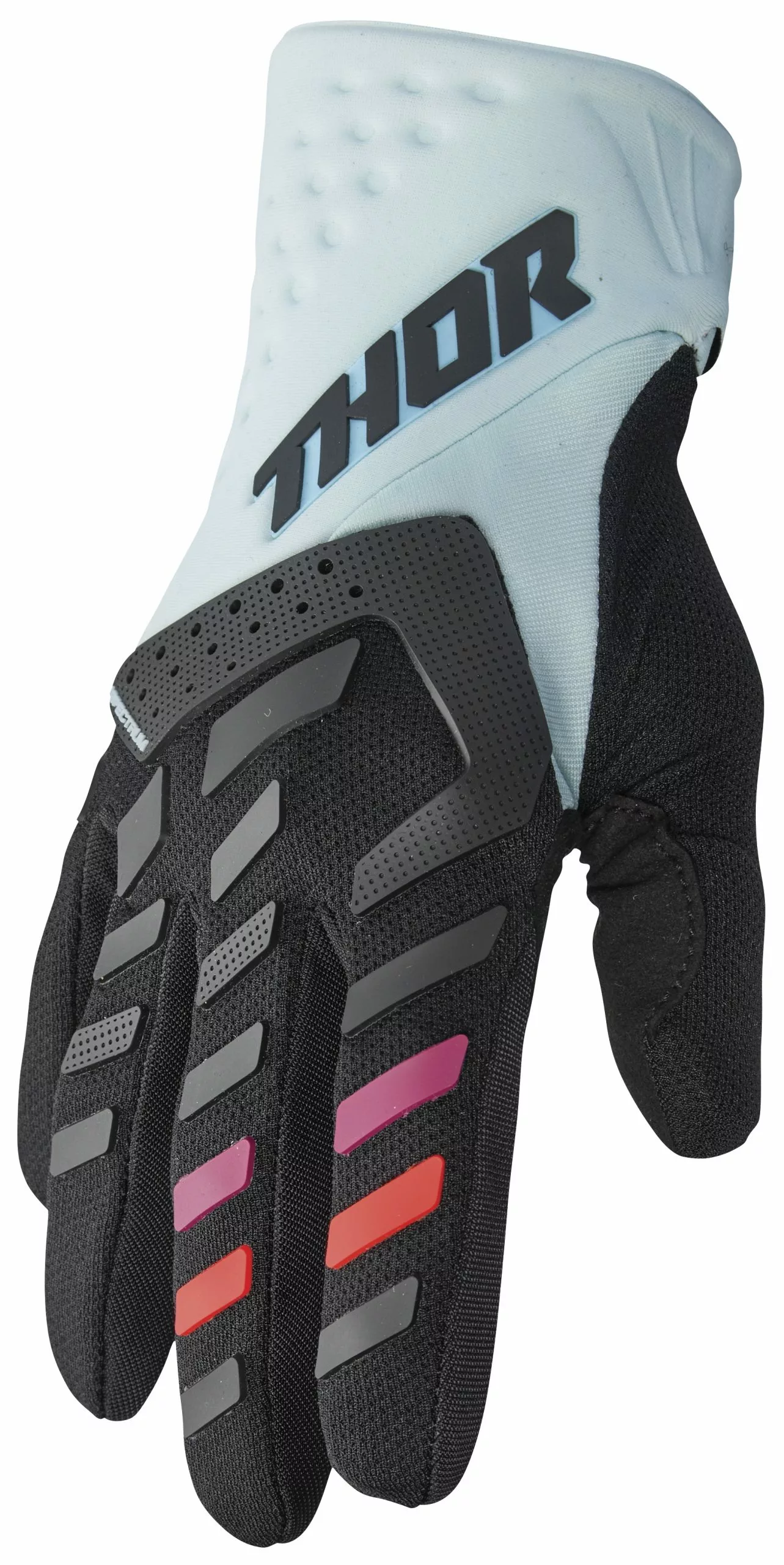 The Thor Spectrum Women’s Gloves are the perfect do-it-all glove for wherever your ride takes you. Strategically placed TPR’s and molded foam inserts are designed for optimal backhand coverage, while the lightly padded palm provides a comfortable grip on the bar. A mesh and Airpene construction delivers premium air flow for cool, dry hands all moto long.